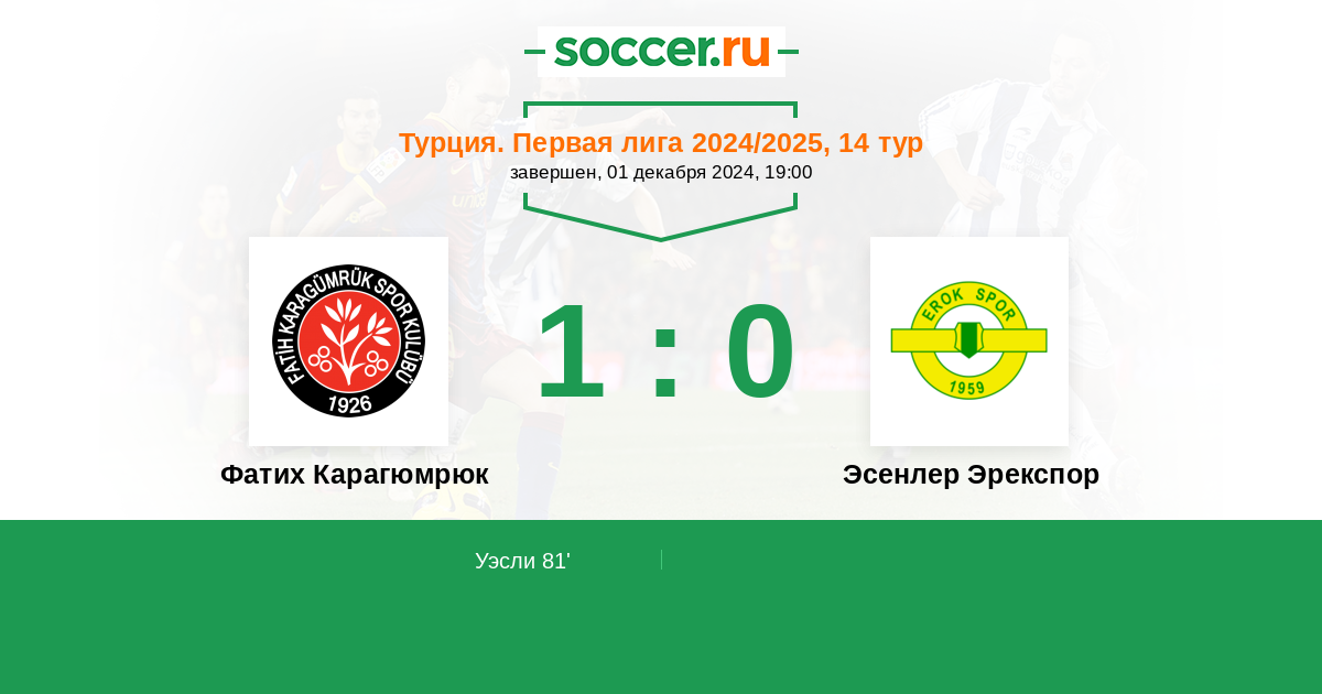 Протокол матча Фатих Карагюмрюк против Эсенлер Эрекспор