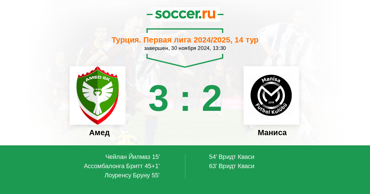 Протокол матча Амед против Маниса