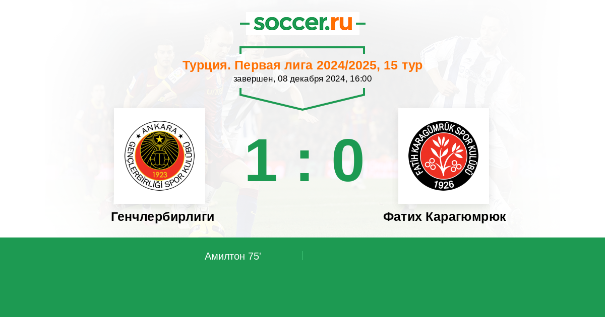 75' (1:0) Амилтон (89) (Мимароглу Метехан (7))