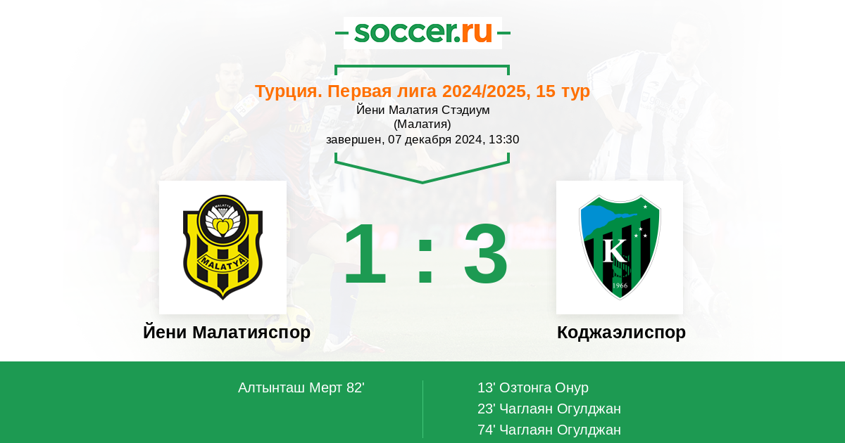Протокол матча Йени Малатияспор против Коджаэлиспор