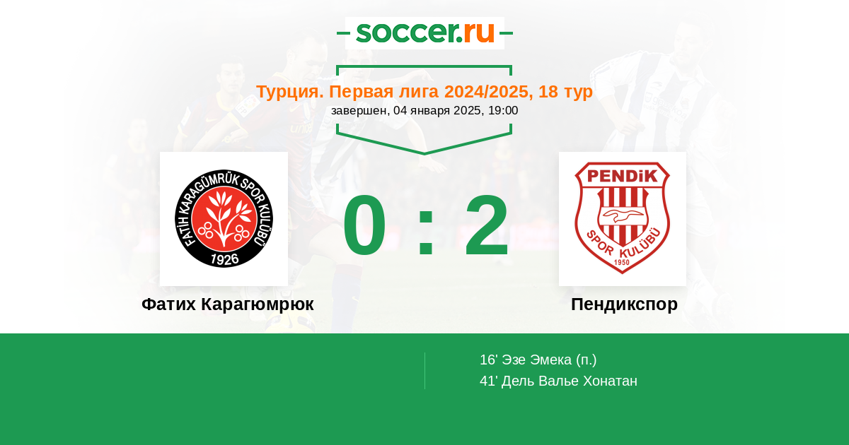 Протокол матча Фатих Карагюмрюк против Пендикспор