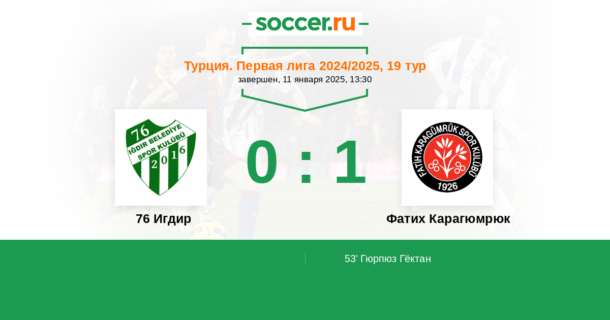 Протокол матча 76 Игдир против Фатих Карагюмрюк