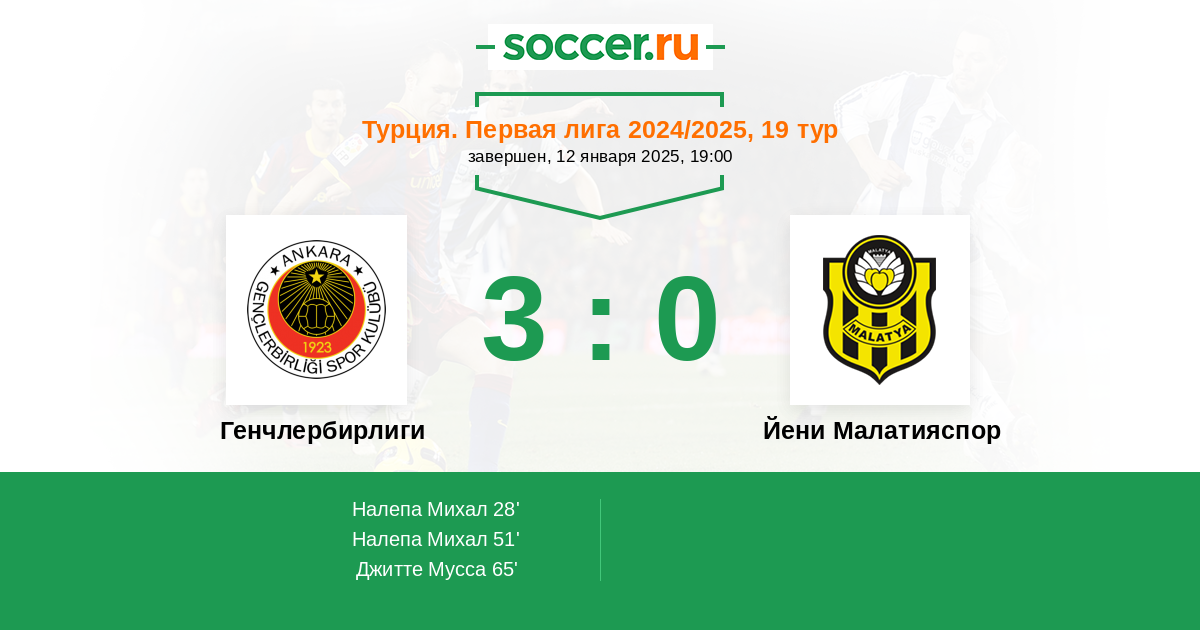 Протокол матча Генчлербирлиги против Йени Малатияспор
