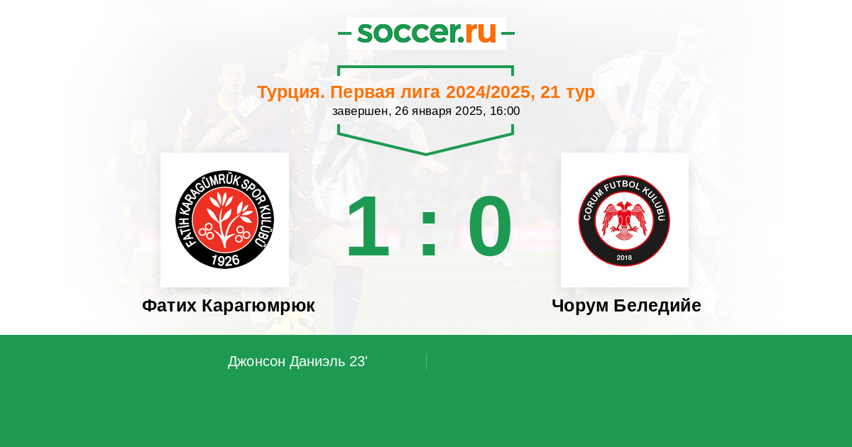 Протокол матча Фатих Карагюмрюк против Чорум Беледийе
