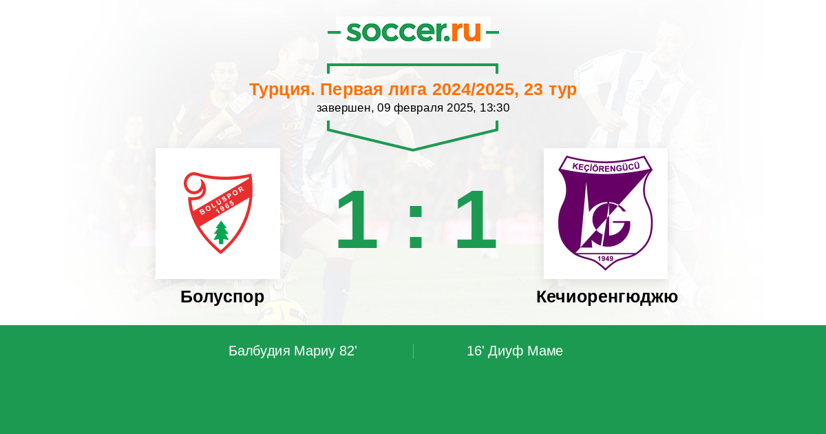 Протокол матча Болуспор против Кечиоренгюджю