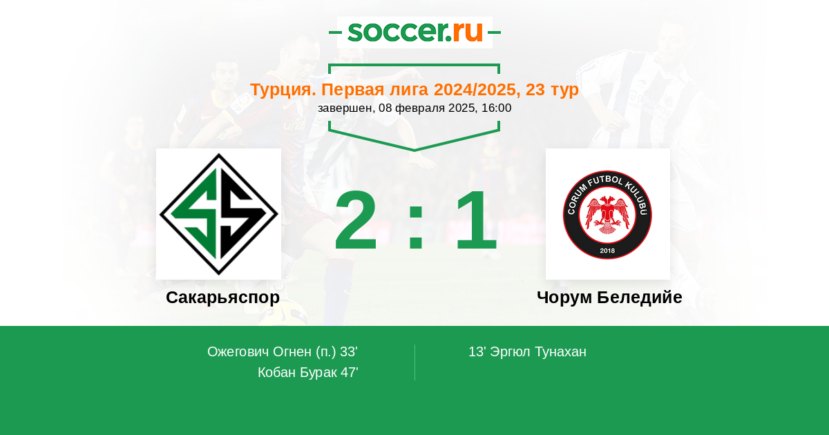 13' (0:1) Эргюл Тунахан (14)
