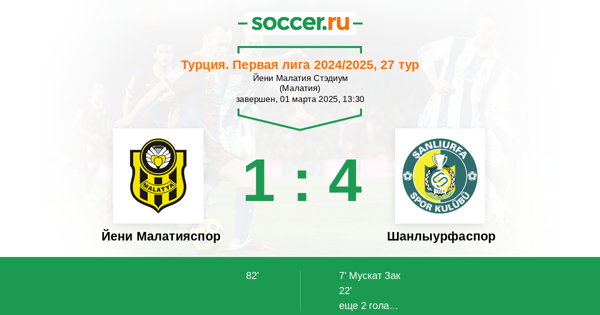 Протокол матча Йени Малатияспор против Шанлыурфаспор