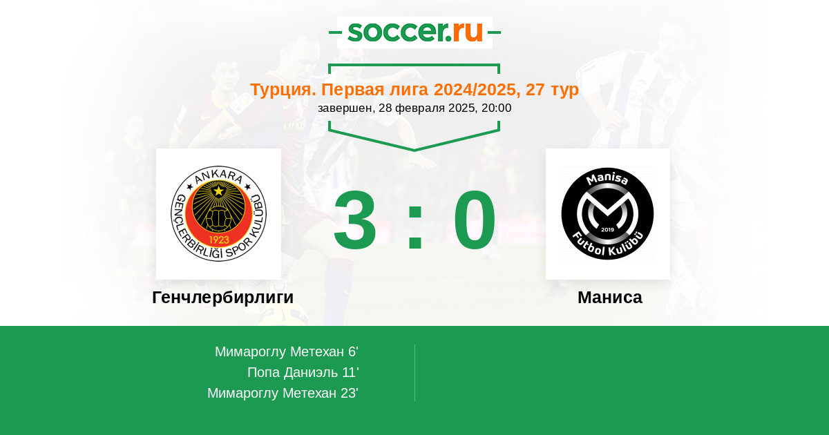 Протокол матча Генчлербирлиги против Маниса