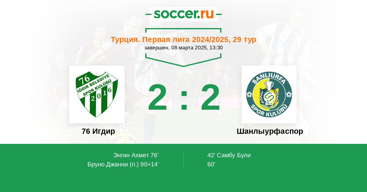 Протокол матча 76 Игдир против Шанлыурфаспор