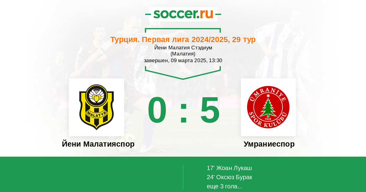 Протокол матча Йени Малатияспор против Умраниеспор