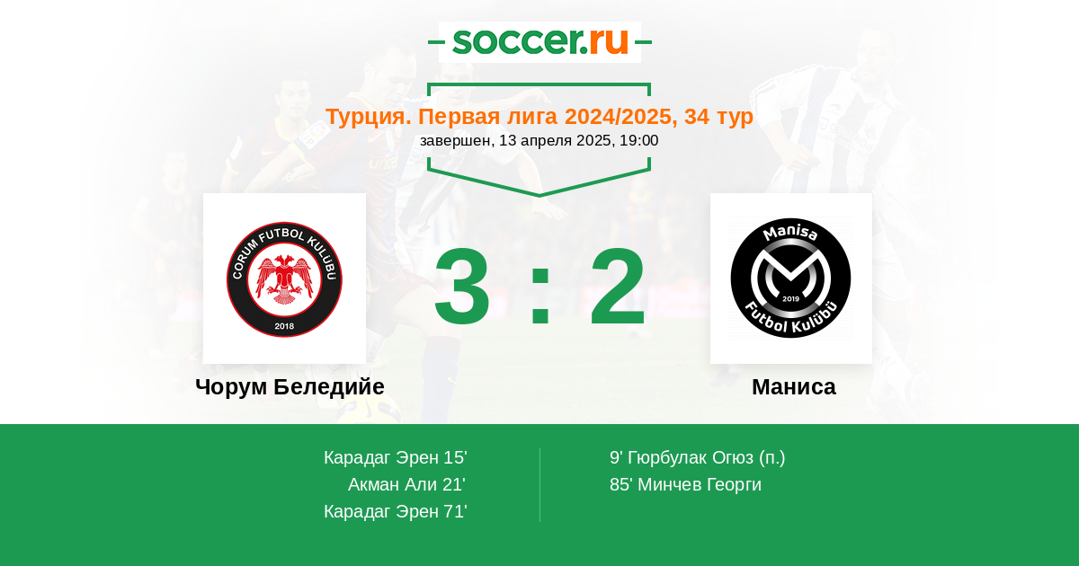 71' (3:1) Карадаг Эрен (99) (Эргюл Тунахан (14))