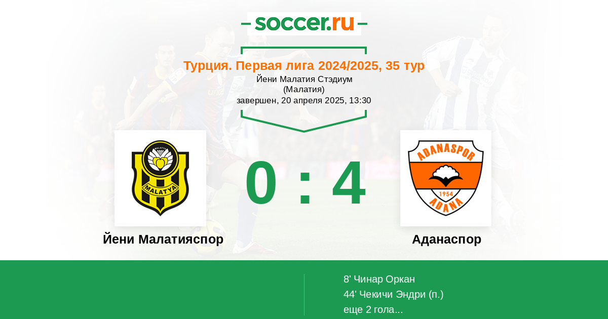 Протокол матча Йени Малатияспор против Аданаспор