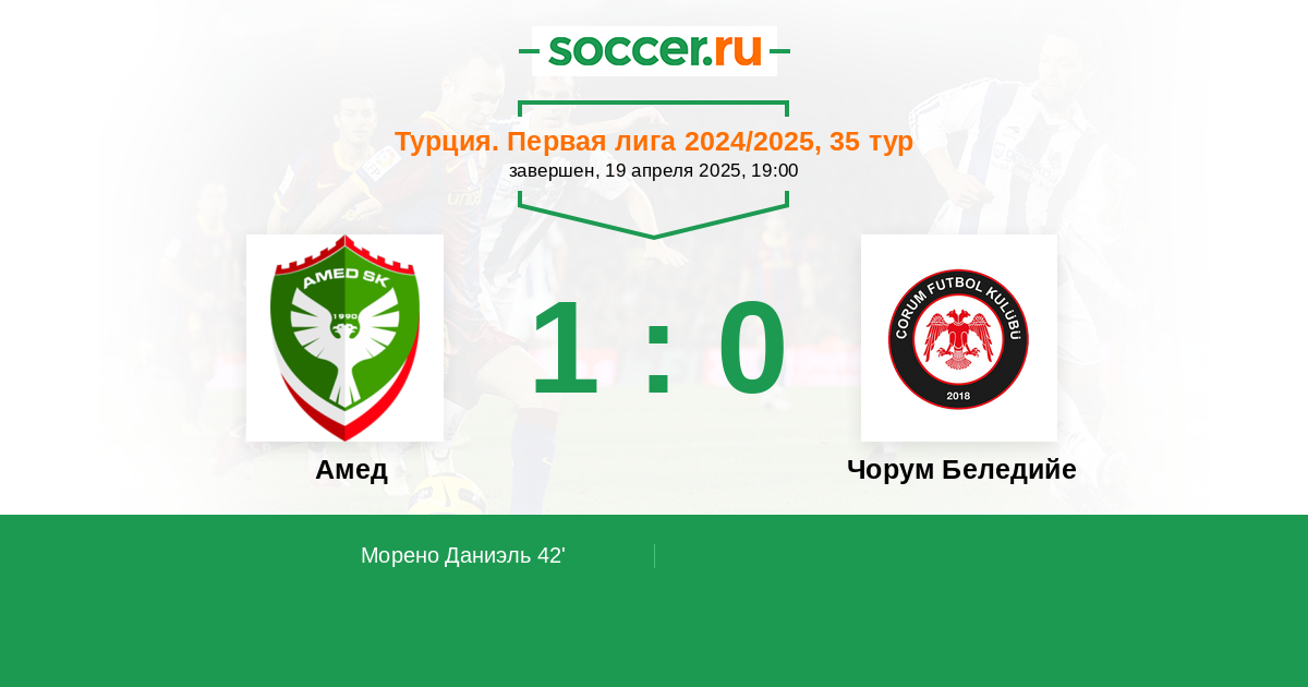 42' (1:0) Морено Даниэль (27) (Орхан Чекдар (10))