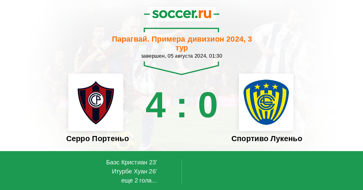 Протокол матча Серро Портеньо против Спортиво Лукеньо