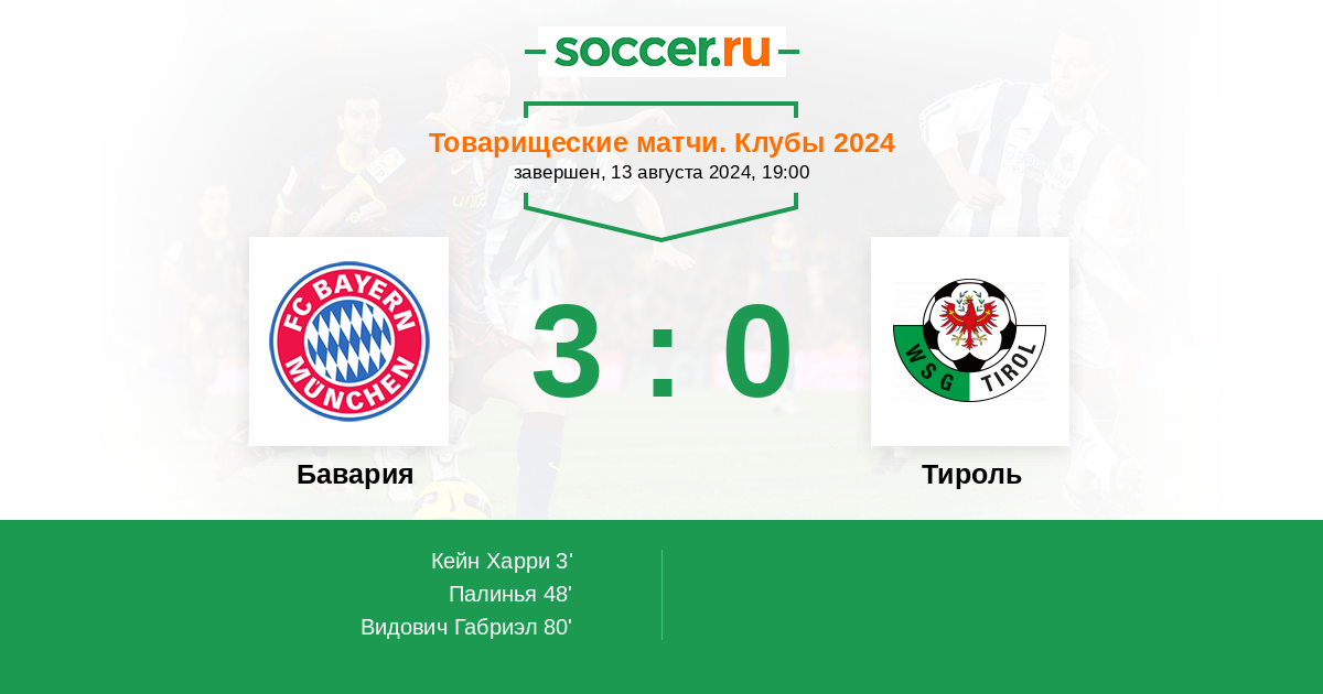 Протокол матча Бавария против Тироль
