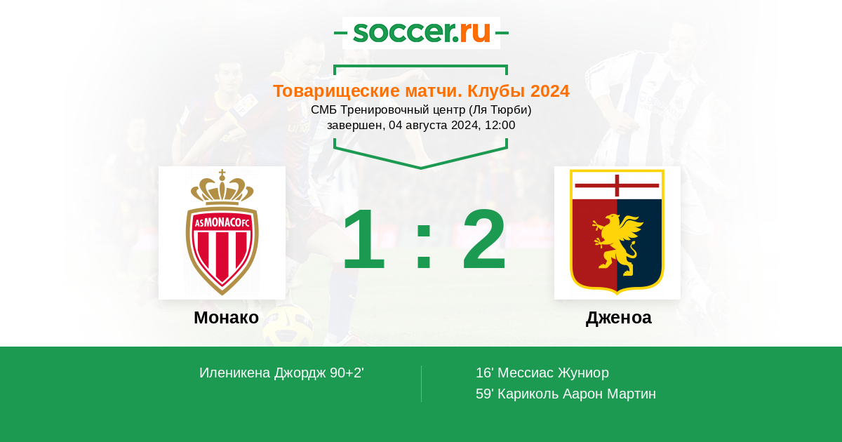 Протокол матча Монако против Дженоа