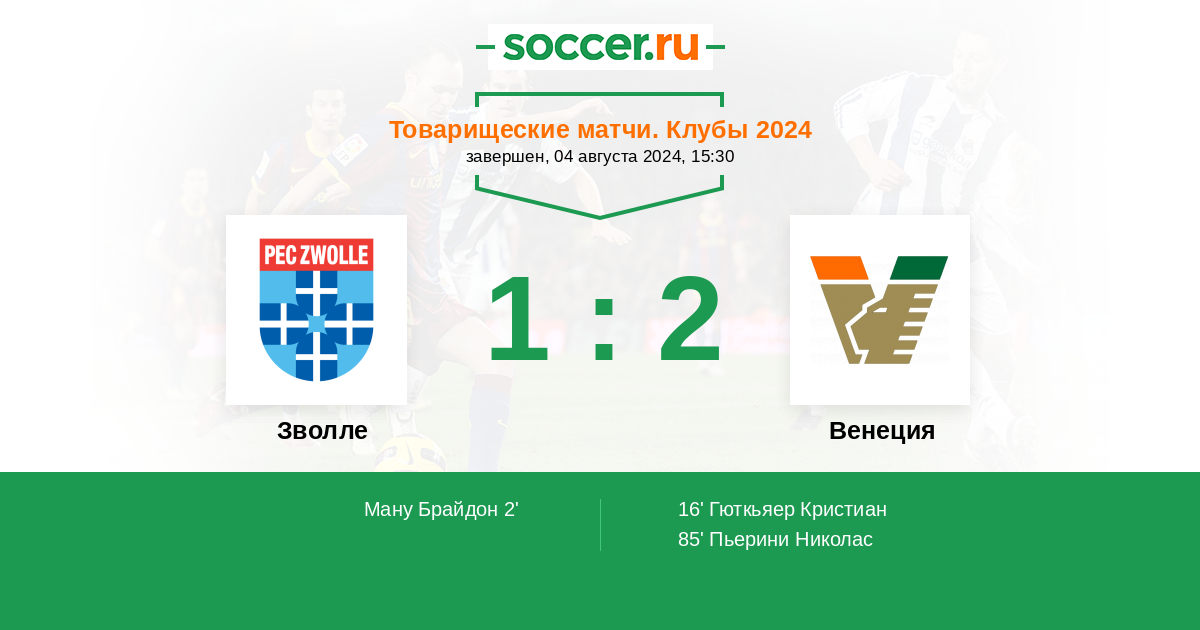 Протокол матча Зволле против Венеция