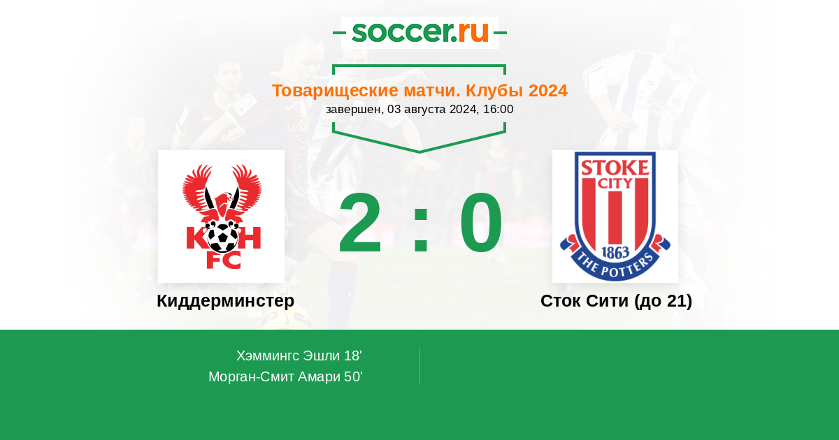 Протокол матча Киддерминстер против Сток Сити (до 21)