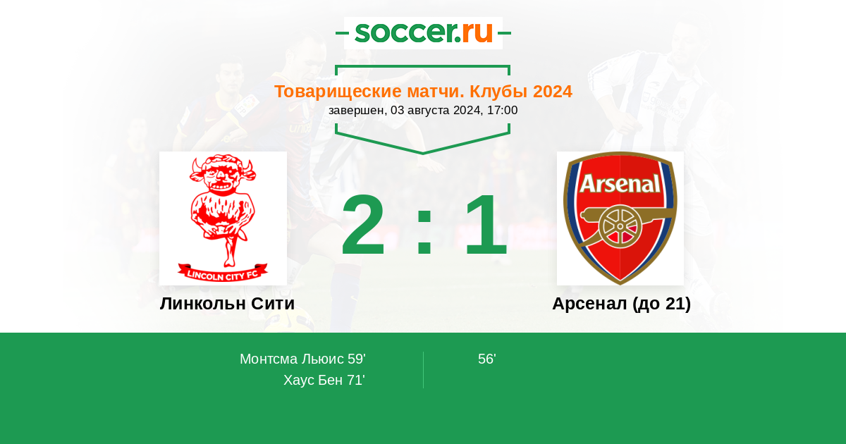 Протокол матча Линкольн Сити против Арсенал (до 21)
