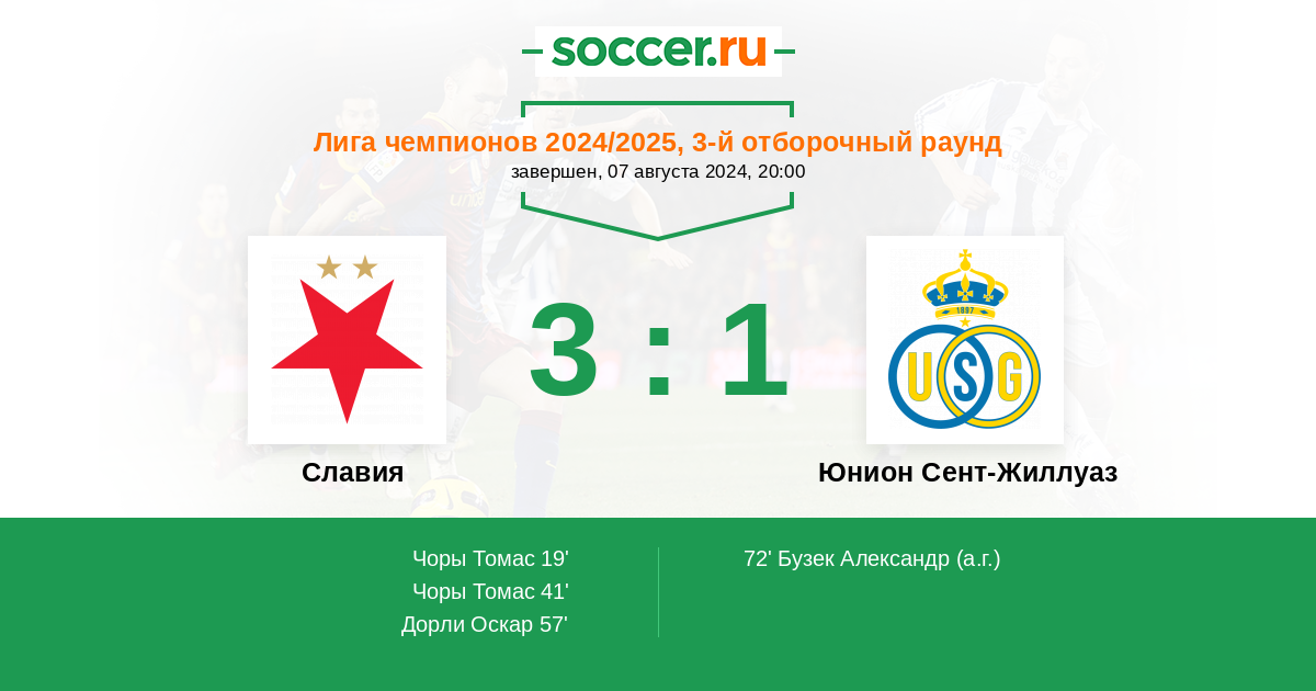 Протокол матча Славия против Юнион Сент-Жиллуаз