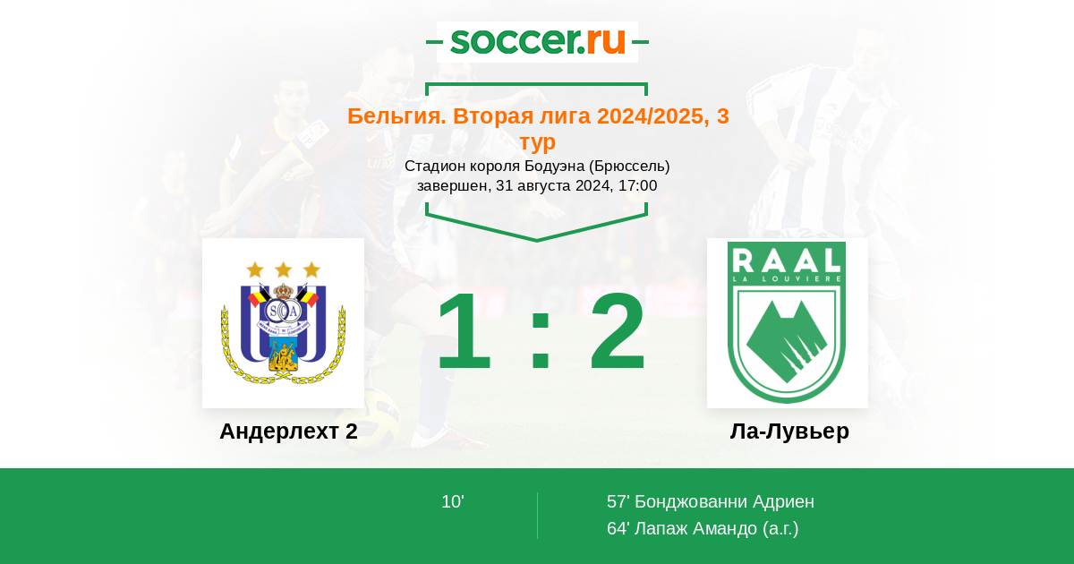 Протокол матча Андерлехт 2 против Ла-Лувьер