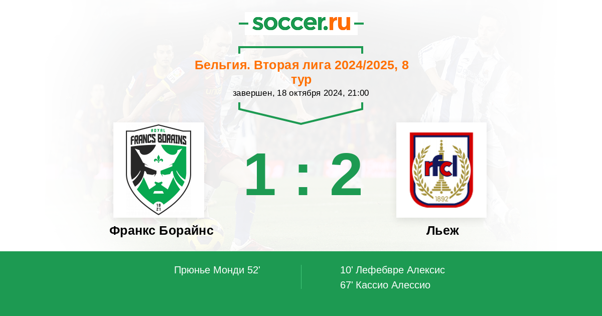 Протокол матча Франкс Борайнс против Льеж