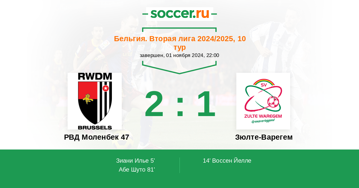 Протокол матча РВД Моленбек 47 против Зюлте-Варегем