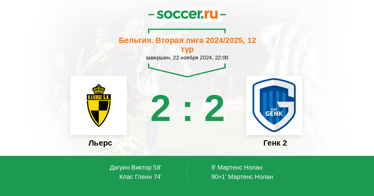 Протокол матча Льерс против Генк 2