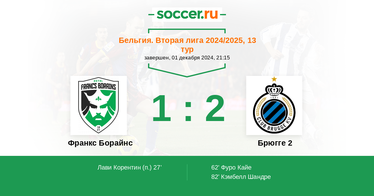 62' (1:1) Фуро Кайе (87) (Аудор Сем (83))