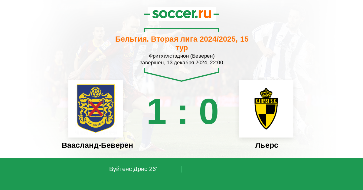 Протокол матча Ваасланд-Беверен против Льерс