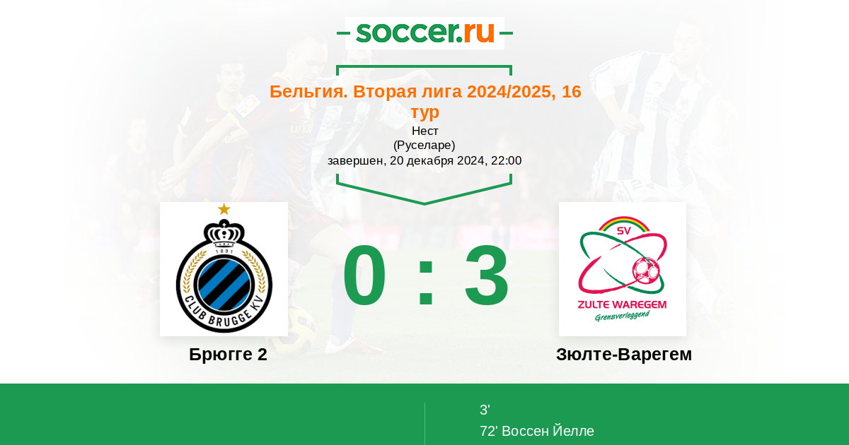 Протокол матча Брюгге 2 против Зюлте-Варегем