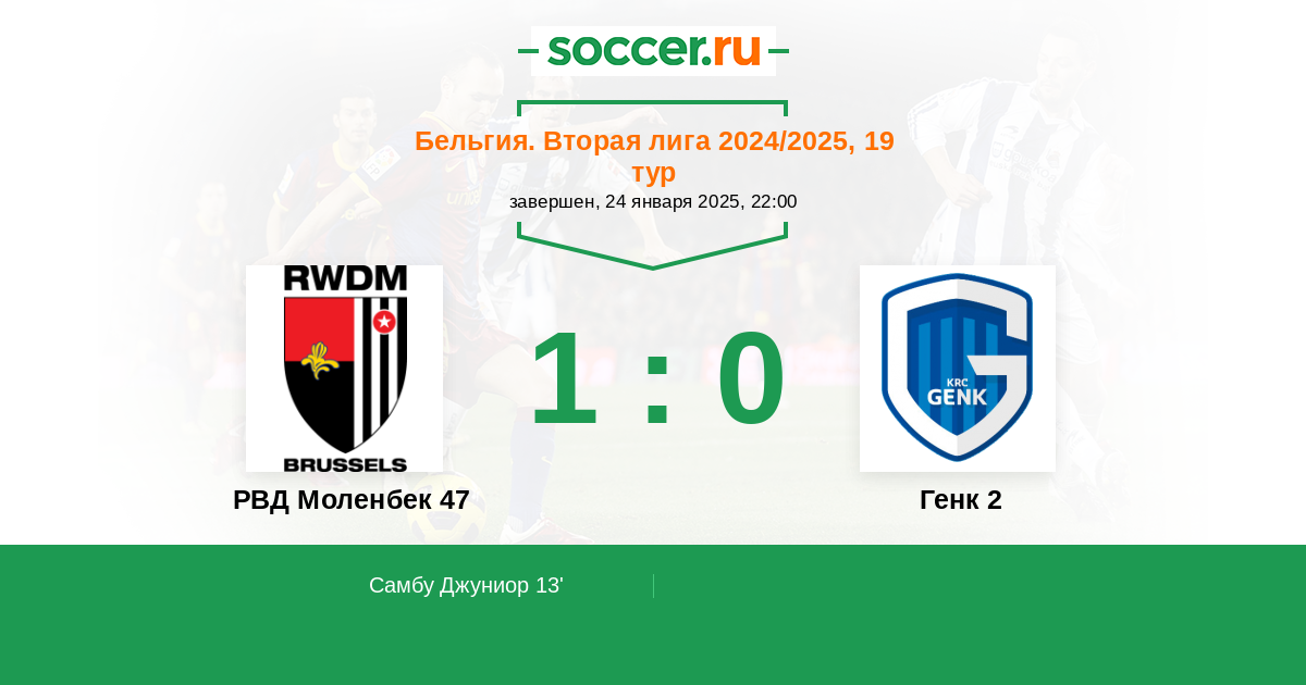 Протокол матча РВД Моленбек 47 против Генк 2