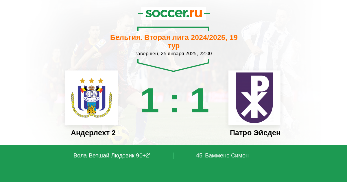 Протокол матча Андерлехт 2 против Патро Эйсден