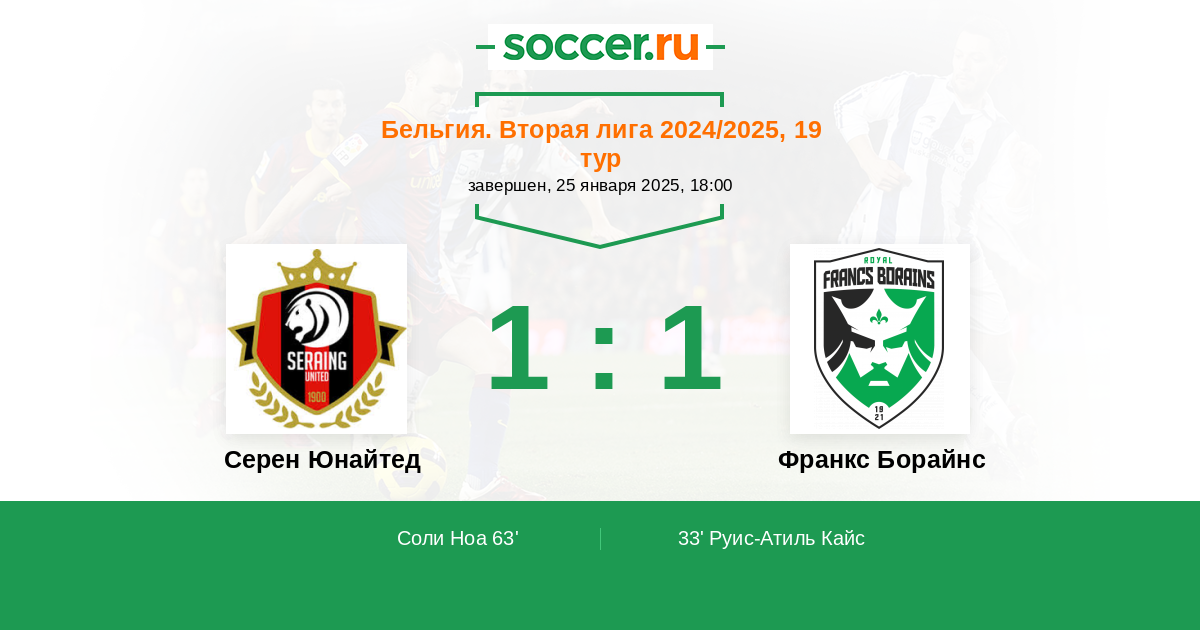 Протокол матча Серен Юнайтед против Франкс Борайнс