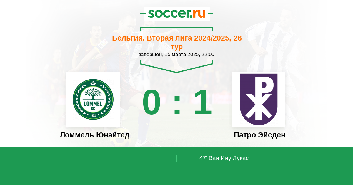 Протокол матча Ломмель Юнайтед против Патро Эйсден
