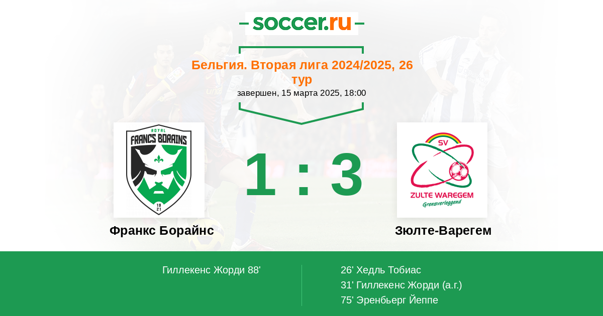 31' (0:2) Автогол Гиллекенс Жорди (27)