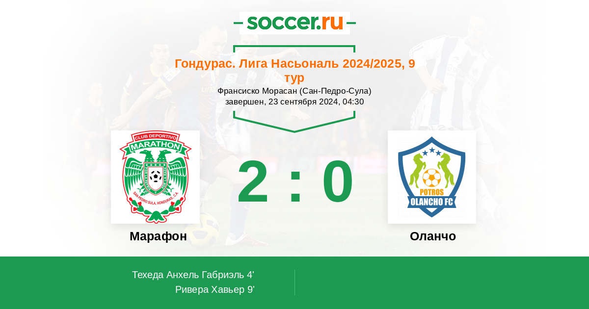 Протокол матча Марафон против Оланчо