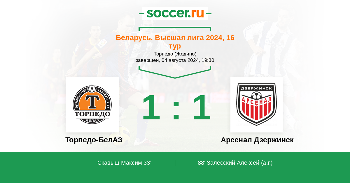Протокол матча Торпедо-БелАЗ против Арсенал Дзержинск
