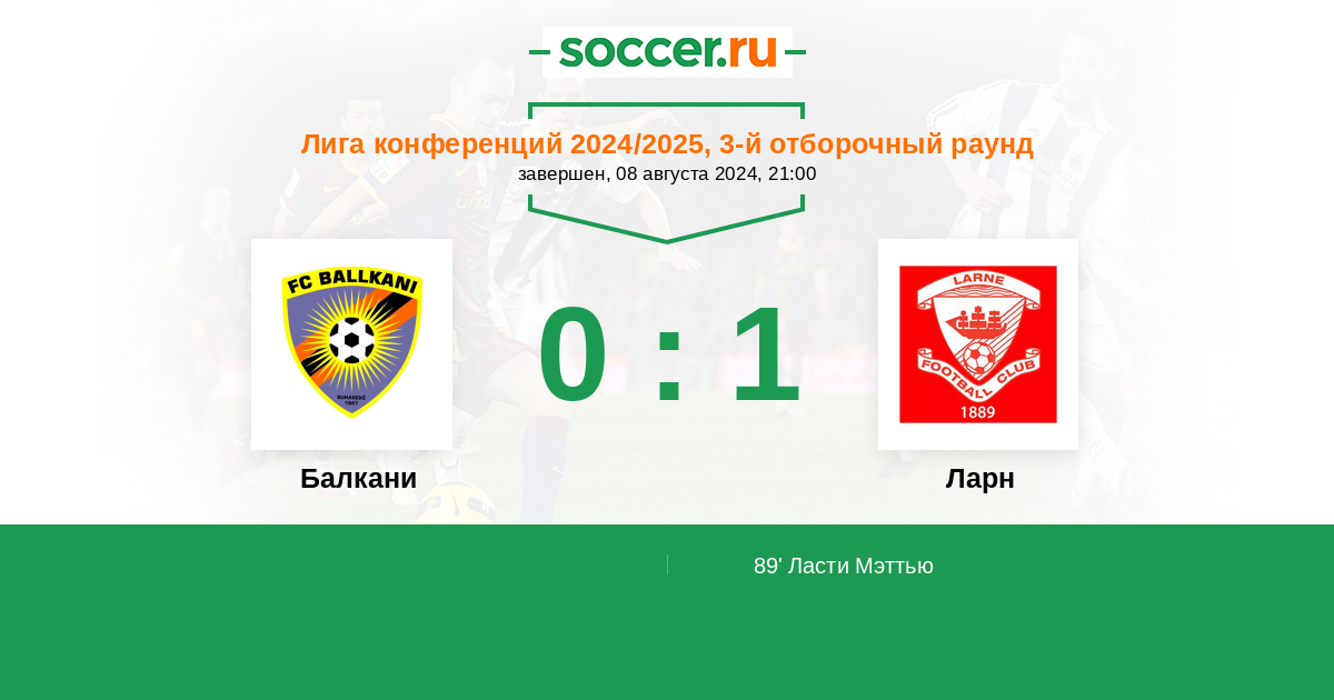 Протокол матча Балкани против Ларн