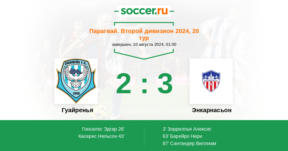 Протокол матча Гуайренья против Энкарнасьон