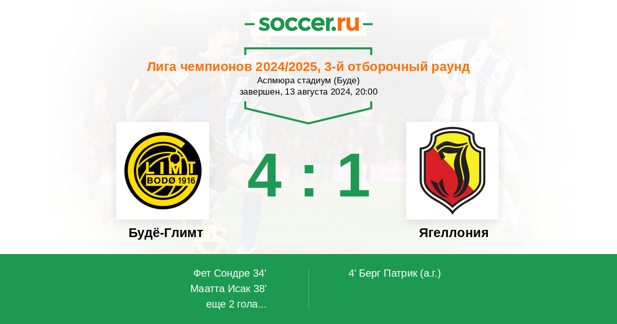 Протокол матча Будё-Глимт против Ягеллония
