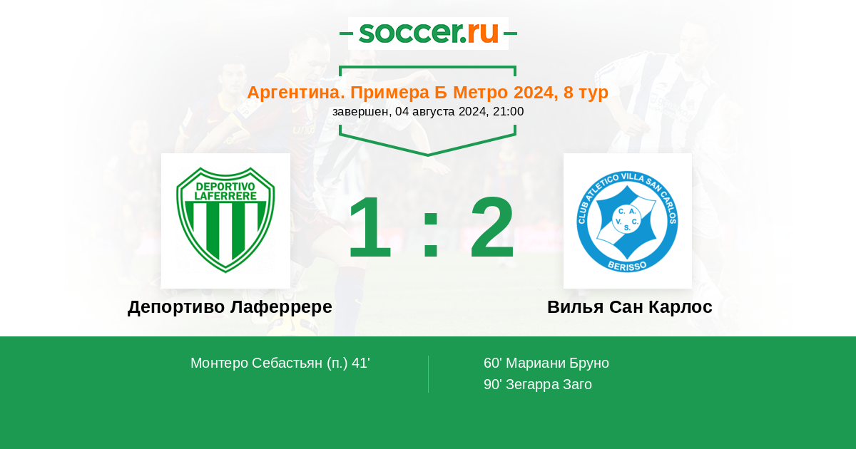 Протокол матча Депортиво Лаферрере против Вилья Сан Карлос