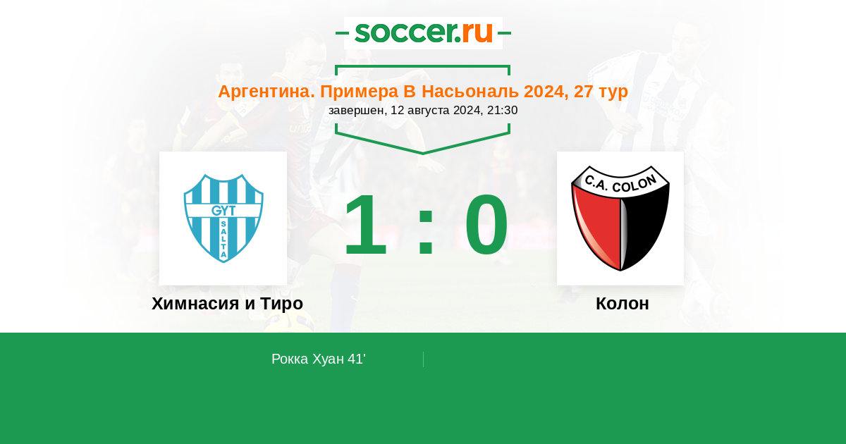 Протокол матча Химнасия и Тиро против Колон
