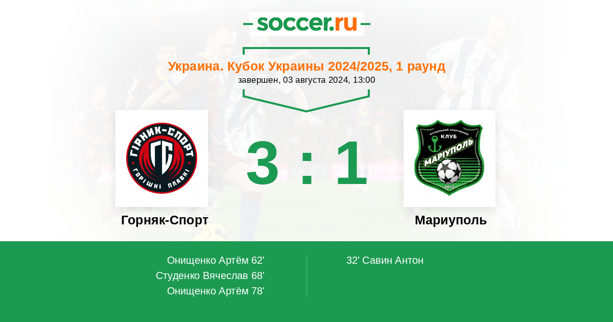 78' (3:1) Онищенко Артём