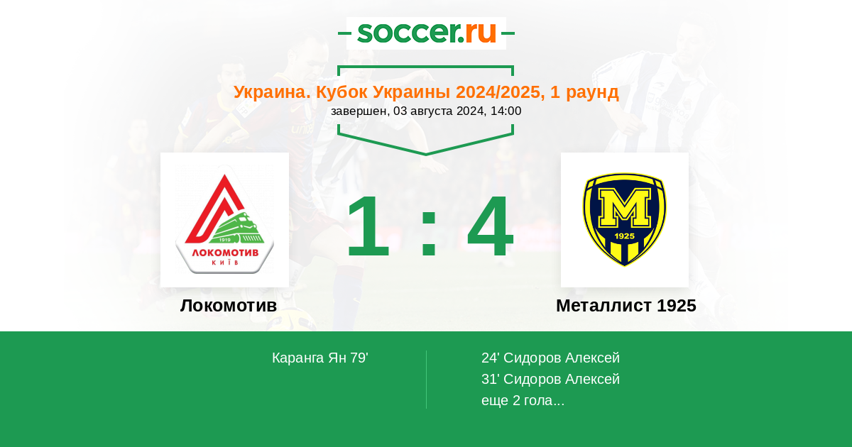 Протокол матча Локомотив против Металлист 1925
