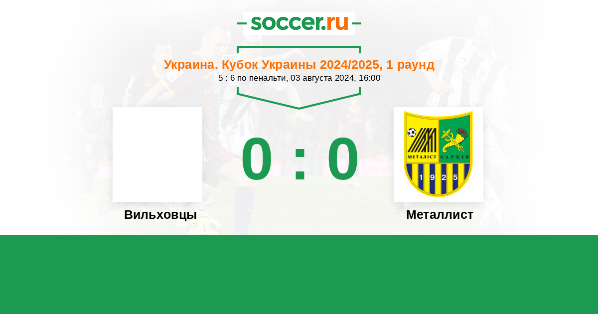 Протокол матча Вильховцы против Металлист