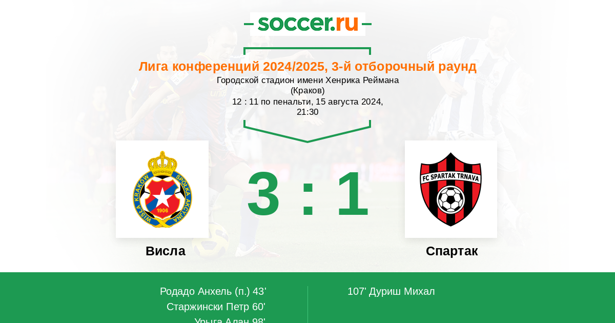 Протокол матча Висла против Спартак