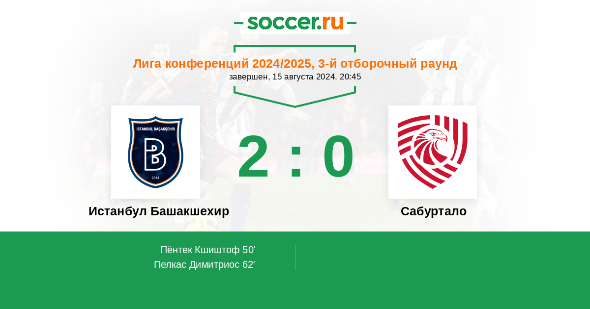 Протокол матча Истанбул Башакшехир против Сабуртало