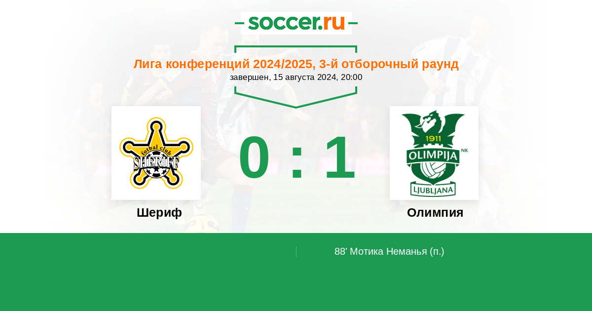 Протокол матча Шериф против Олимпия