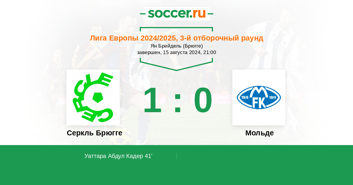 Протокол матча Серкль Брюгге против Мольде